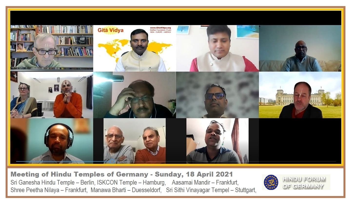Die Vertreter von Hindu-Tempeln und -Organisationen aus ganz Deutschland kamen zusammen, um die aktuelle Situation und die Zukunftsaussichten der Hindu-Gemeinschaften in Deutschland zu diskutieren. In der Corona-Pandemie kamen alle spirituellen, religiösen, kulturellen und sozialen Aktivitäten der Hindu-Gemeinschaften zum Erliegen. Die Regierung hat neue Richtlinien erlassen, um die Menschen vor der Pandemie zu schützen, und hat dabei die öffentlichen Versammlungen eingeschränkt. Ziel dieser Konferenz war es, die Auswirkungen der Pandemie auf die aktuelle Funktion der Tempel zu diskutieren und gleichzeitig den zukünftigen Spielraum für die religiöse, soziale und kulturelle Integration der Hindu-Gemeinschaften in Deutschland zu erörtern.